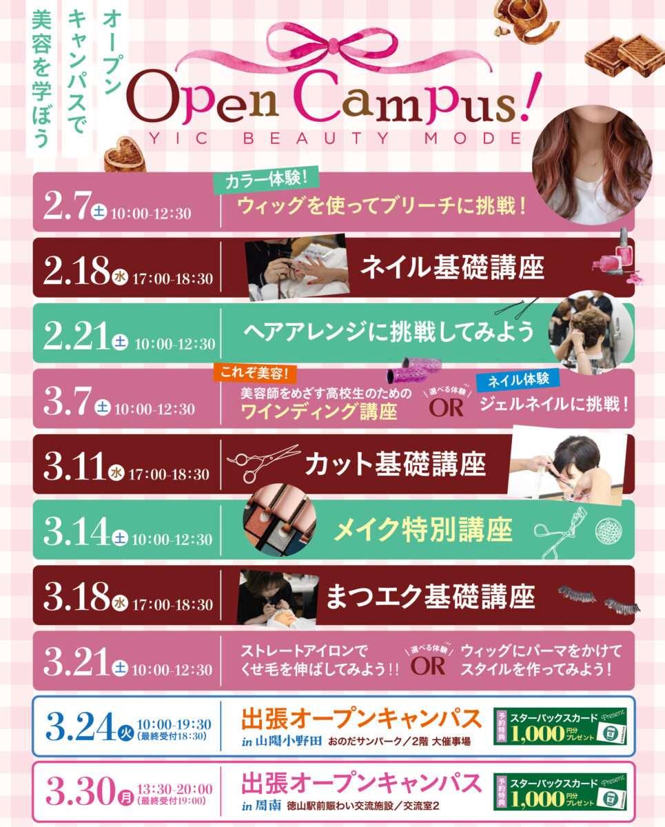 /// 2・3月オーキャンのお知らせです /// 2・3月 オープンキャンパスのご案内です💄✨ 美容に興味のある皆さん、 是非オープンキャンパスにご参加くださいね♡ 皆さんのご参加をお待ちしております🎡