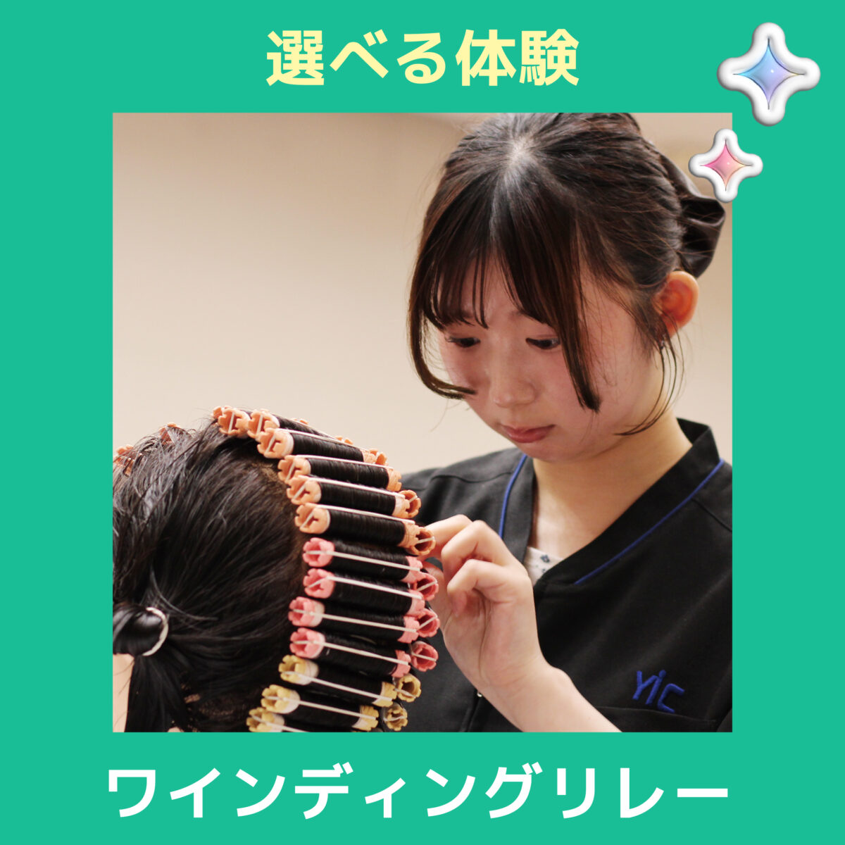 選べる体験♪こちらは「ウィッグにパーマをかけてスタイルを作ってみよう!」