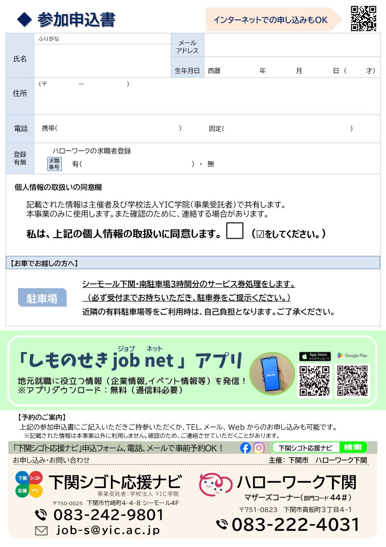 ※ ハローワーク下関で事前に求職登録が必要となりますので、ご協力ください。