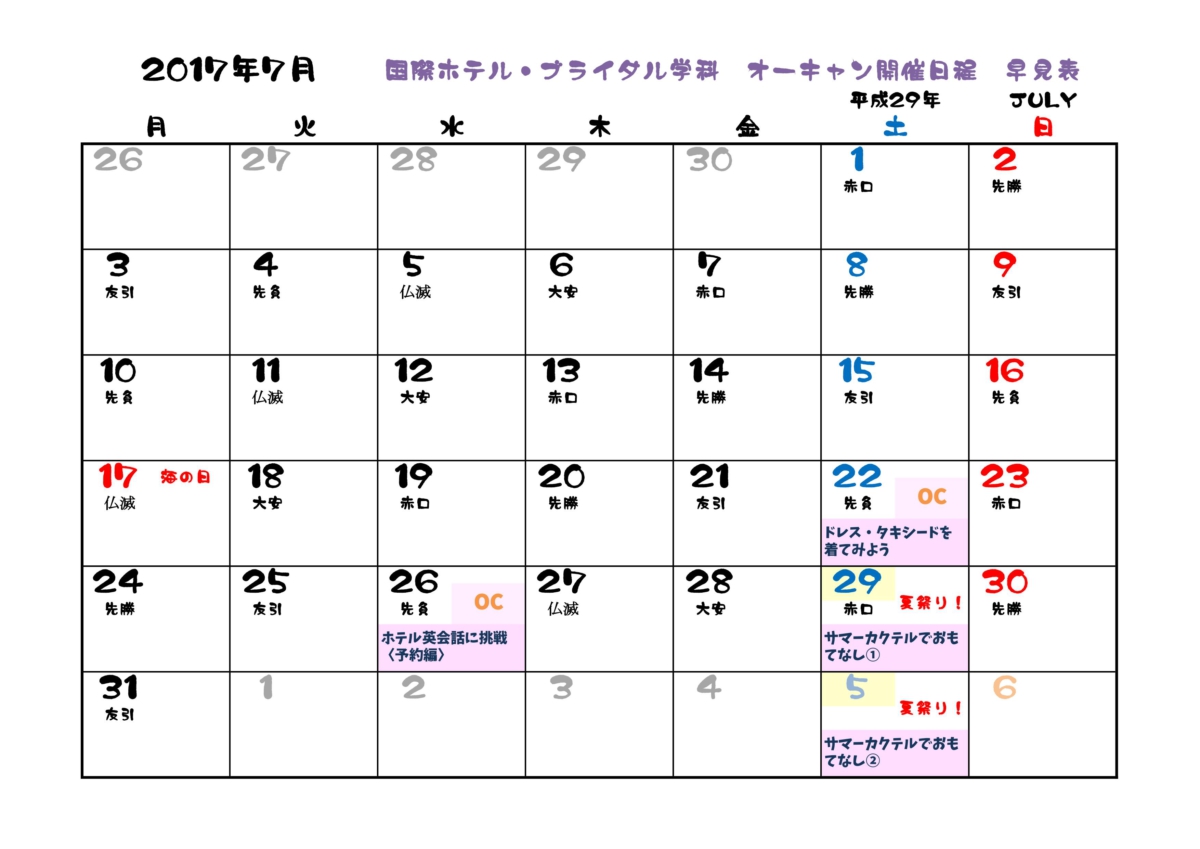 オープンキャンパス・学校説明会開催日程
