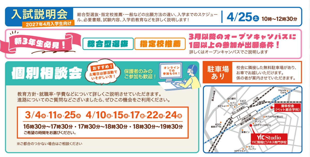 YIC情報ビジネス専門学校についてはこちら。