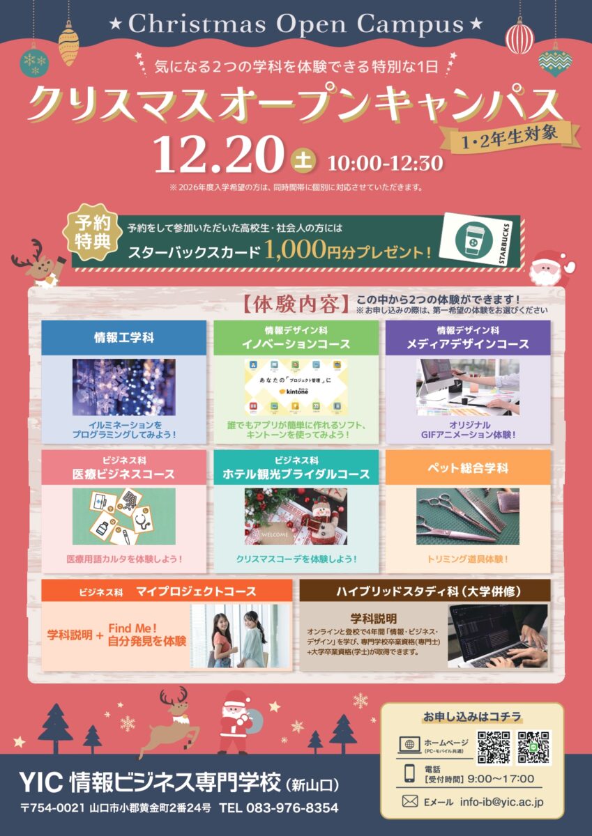 【12月20日(土)開催!】クリスマスオープンキャンパスのお知らせ✨