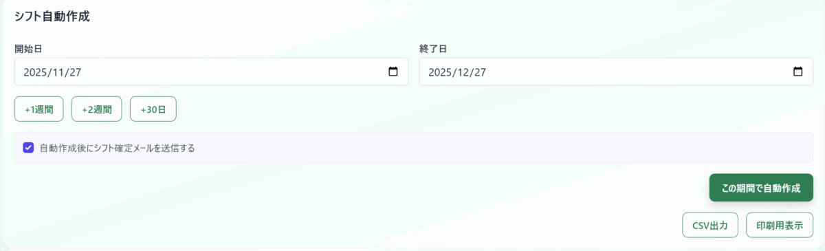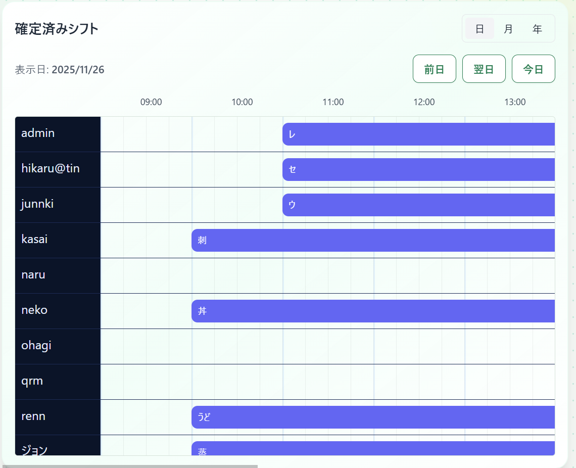 一方で店長は、これまで手作業で行っていたシフト作成が自動化され、欠勤が発生した際の調整もアプリ側でサポートされるため、業務負担が大幅に減少します。