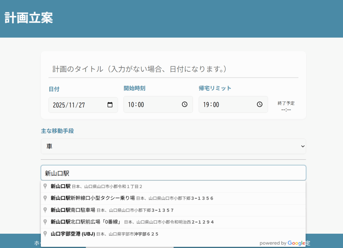 このWebアプリケーションは、あなたが登録した「予定リスト(用事)」とGoogle Mapsのルート情報を統合します。
