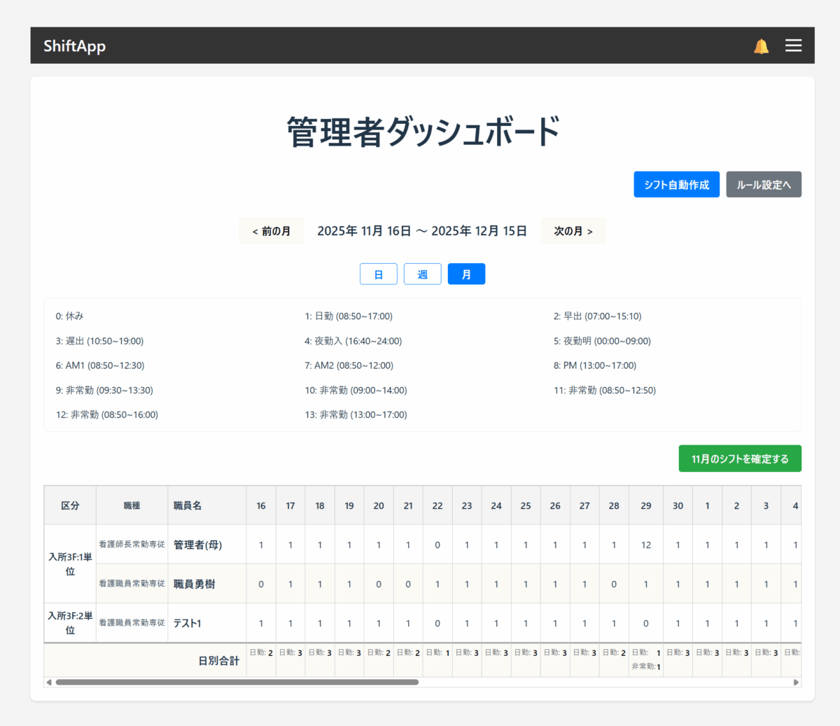 「TasuCare(タスケア)」は、老人保健施設(老健)特有の複雑なシフト作成・管理を効率化し、管理者である私の母の負担を軽減するために生まれたWebアプリ(スマホ・PC対応)です。