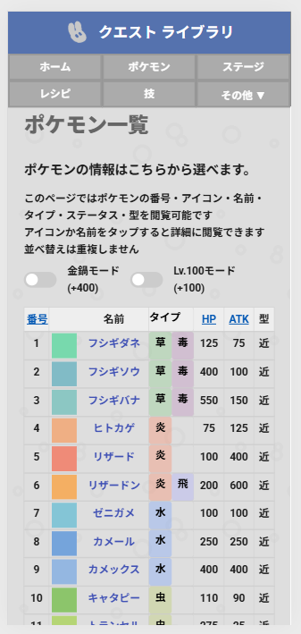 初代151匹のポケモン情報、技データ、レシピ、ステージ攻略などをまとめました