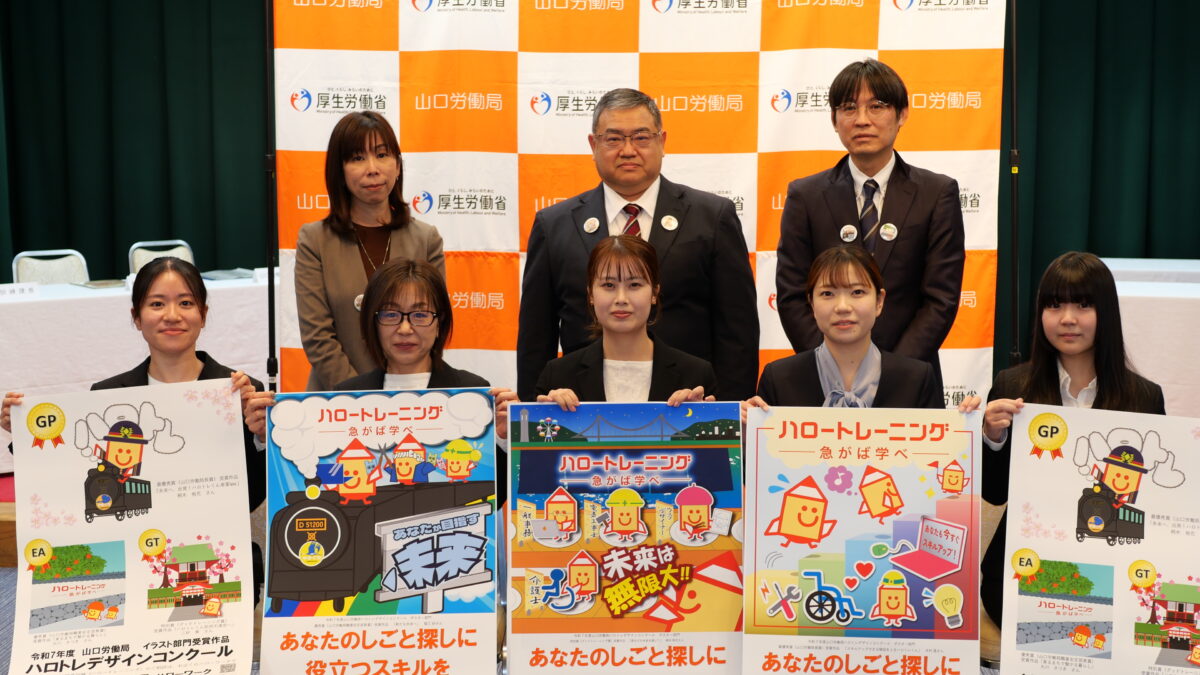 令和8年3月17日(火)、山口市にて「ハロトレデザインコンクール」の表彰式が行われました。このコンクールは、公的職業訓練(ハロートレーニング、通称:ハロトレ)を幅広い世代に知ってもらうことを目的として実施されたものです。