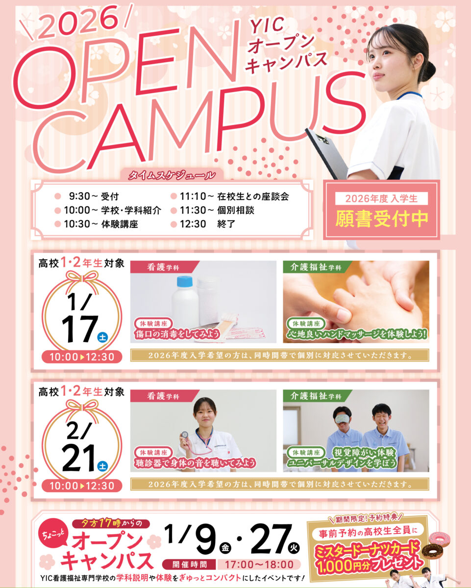 【1・2月のイベントのお知らせ】 YIC看護福祉専門学校では、色々なイベントをご用意しています!