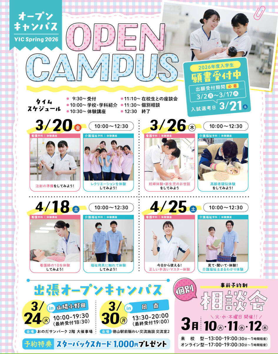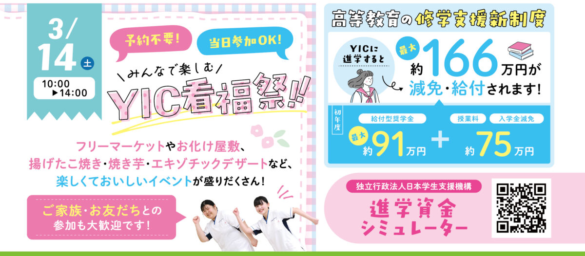 【3・4月のイベントのお知らせ】 YIC看護福祉専門学校では、色々なイベントをご用意しています!