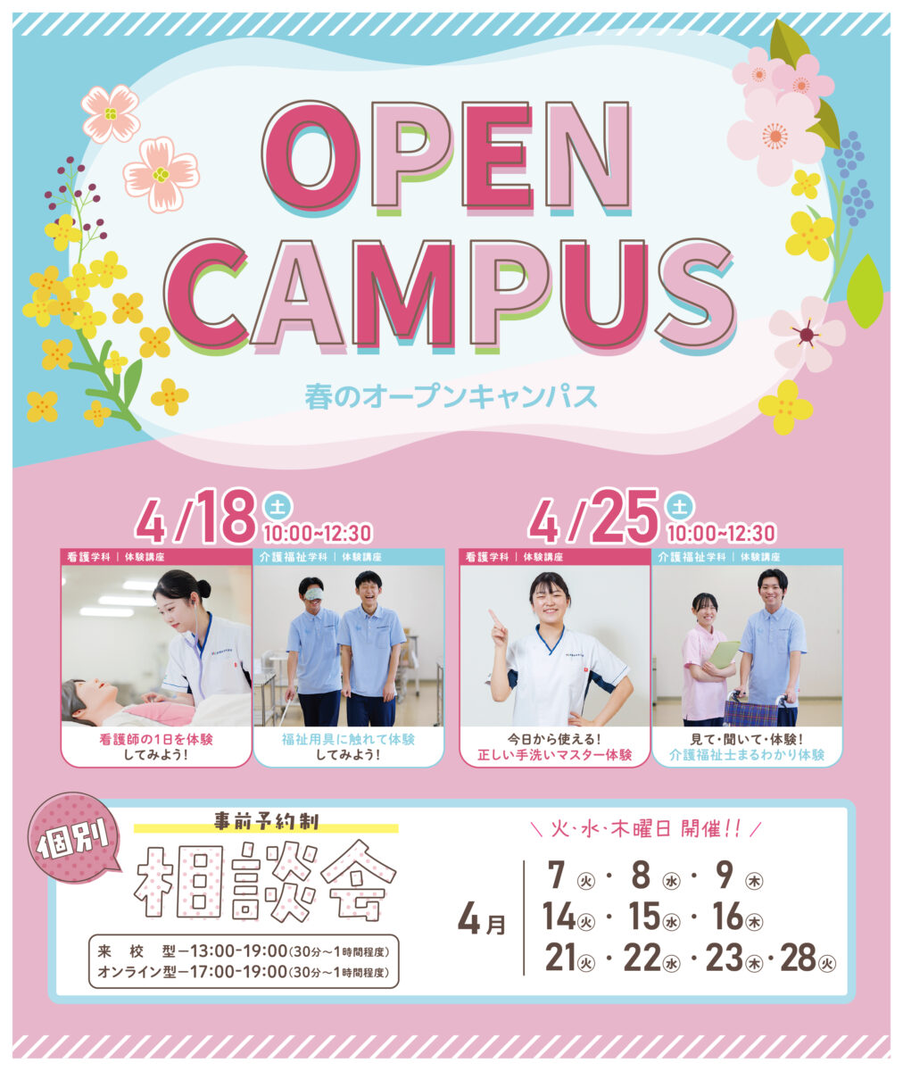 体験アリのオープンキャンパスや じっくり個別に話せる個別相談会などを実施しています! ぜひご参加ください✨