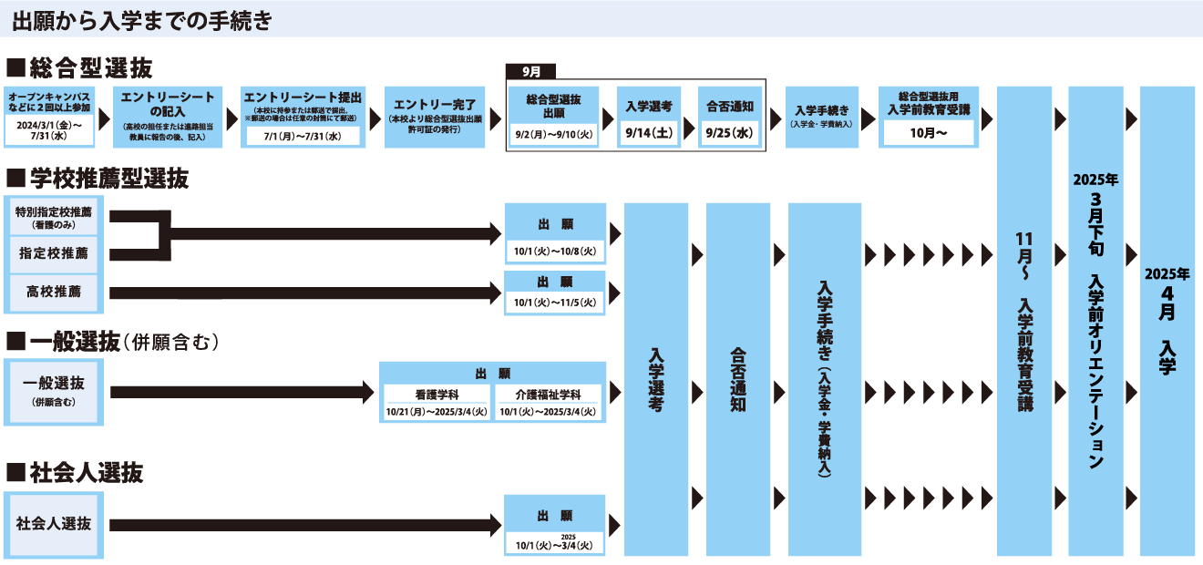 | 介護 | 出願受付期間(必着) | 入学選考日 | 合格通知日 | 出願区分 | |||||