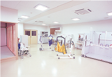 主として機能訓練の学習に使用する教室です。ほかに医用機械での運動機能の測定が行えます。歩行練習や全身機能改善のための機器が備えられています。