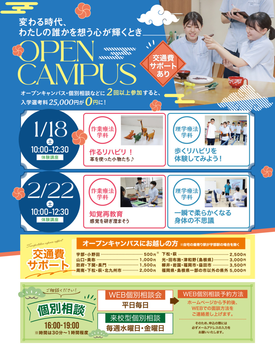 ① オープンキャンパス・個別相談にお越しの方に、交通費をサポート!