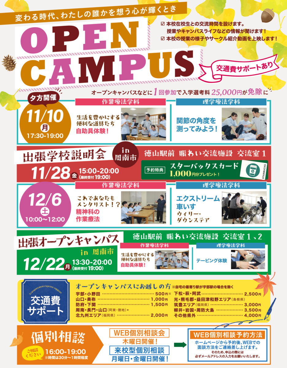 11・12月のオープンキャンパスの詳細はコチラ👇