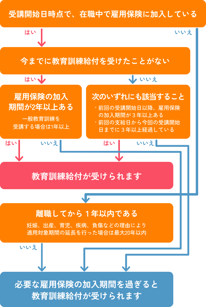 詳しくはハローワークの「教育訓練給付窓口」で支給要件照会の手続きをし、 給付が受けられるかどうかや、その後の手続きの流れをご確認ください。