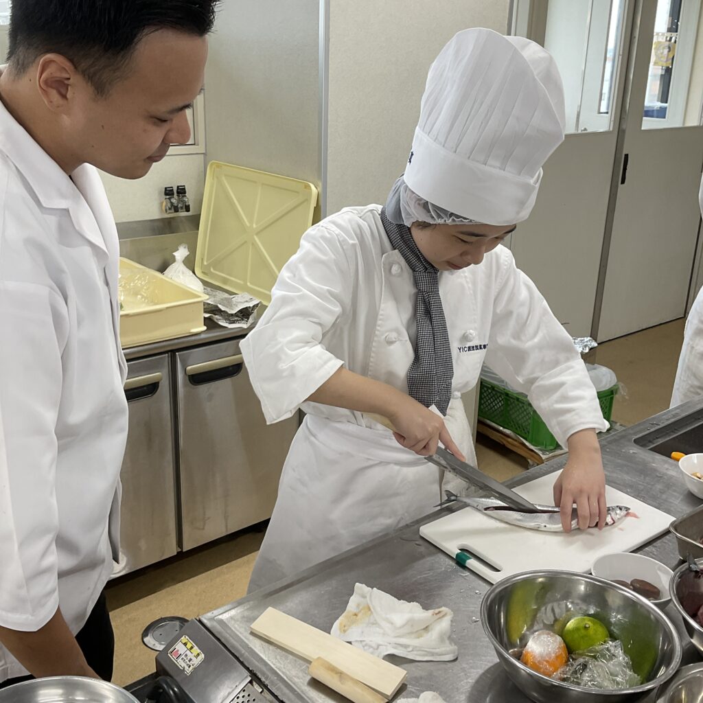 秋刀魚の切り方を教えて頂き、学生達は綺麗に捌くのを頑張っていました✨