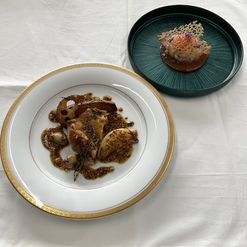 ・真鯛・甘海老のタルタルと醤油漬け卵黄 トマトドレッシング