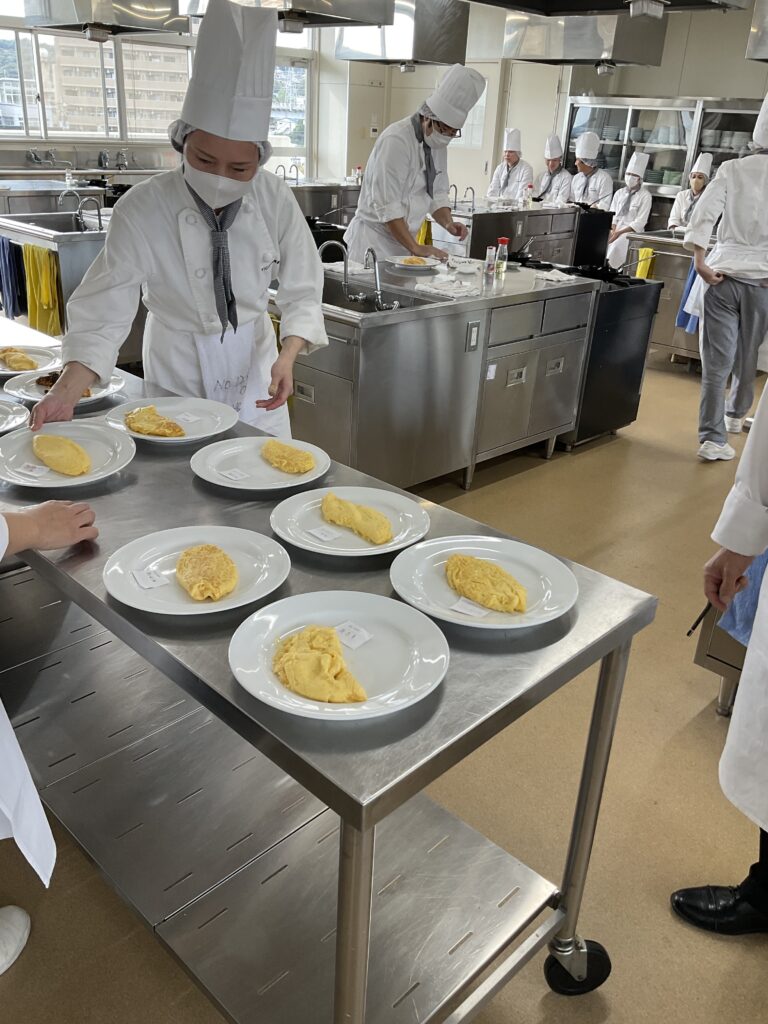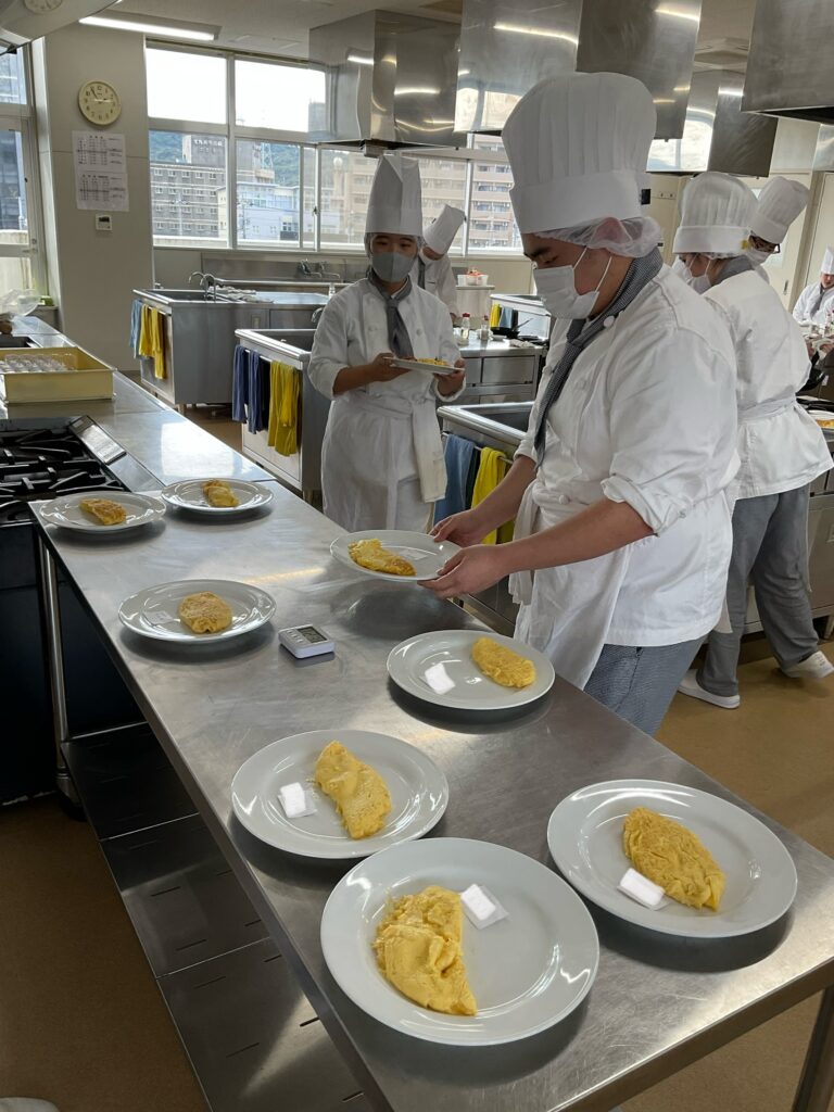 10月6日(月)調理師科コース1年生 後期実技試験課題 じゃがいものシャトー剥き、オムレツ(プレテスト)をおこないました!やはり練習をコツコツするのが大事です!先生のデモをみるとサラッと出来そうですが、、、これがまた地道な努力が必要なんですよね=ε=ε==͟͟͞͞( Ꙭ)コツを掴み、極めてほしいです💪💪( ^•ﻌ•^)⚐⚑⚐
