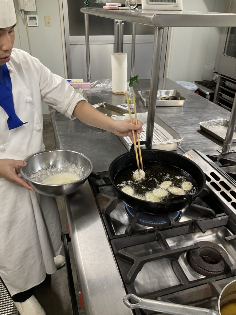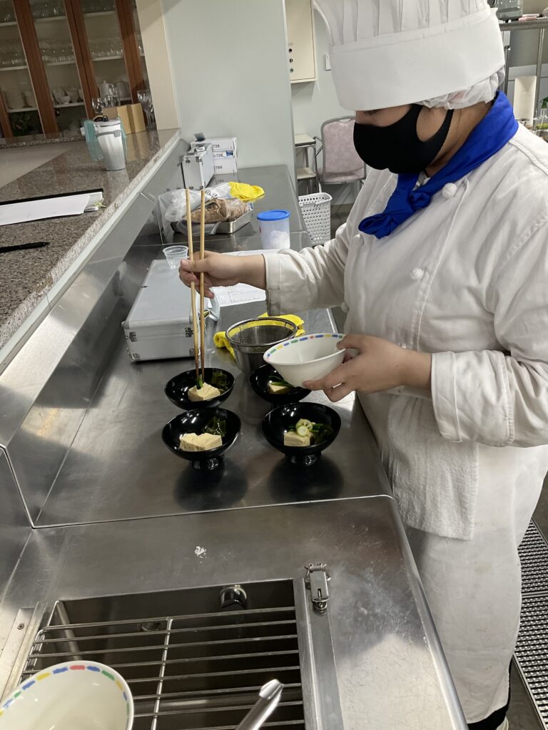 調理師科2年コースの学生が天ぷら、吸物、甘味作りに挑戦しました。天ぷらの時の飾り切りや、玉子豆腐の蒸し方などちょっと難しい所もあったようですが、キレイに作ることが出来ました✨️モチモチのみたらし団子も最高でした(n´ω`n)