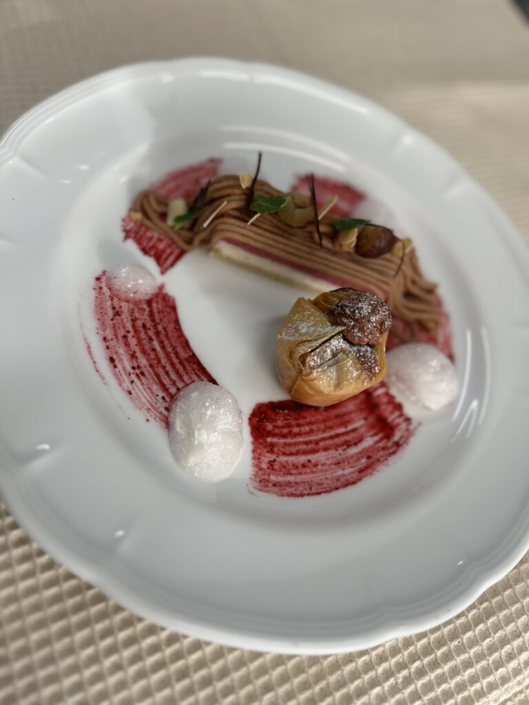 生地ではパートフィロを使い、中にフランジパーヌを入れ渋皮栗を飾りスチームコンベクションオーブンで焼成🌰