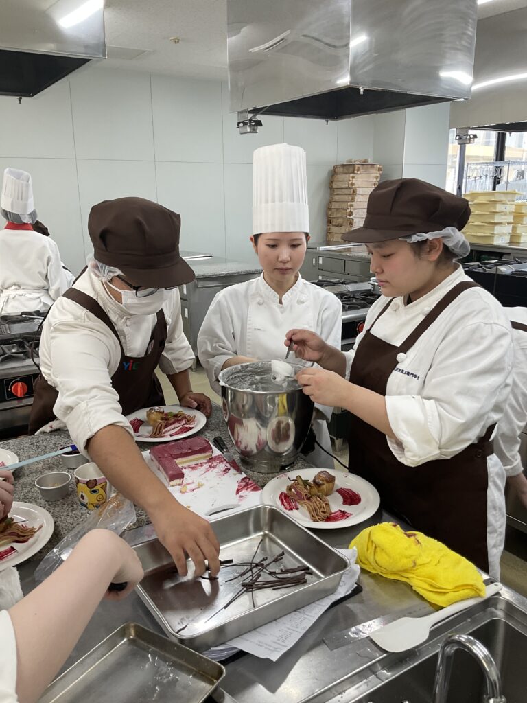 本日は、リーガロイヤルホテル広島の洋菓子シェフ :中山 先生にお越しいただき、実習をしました👏