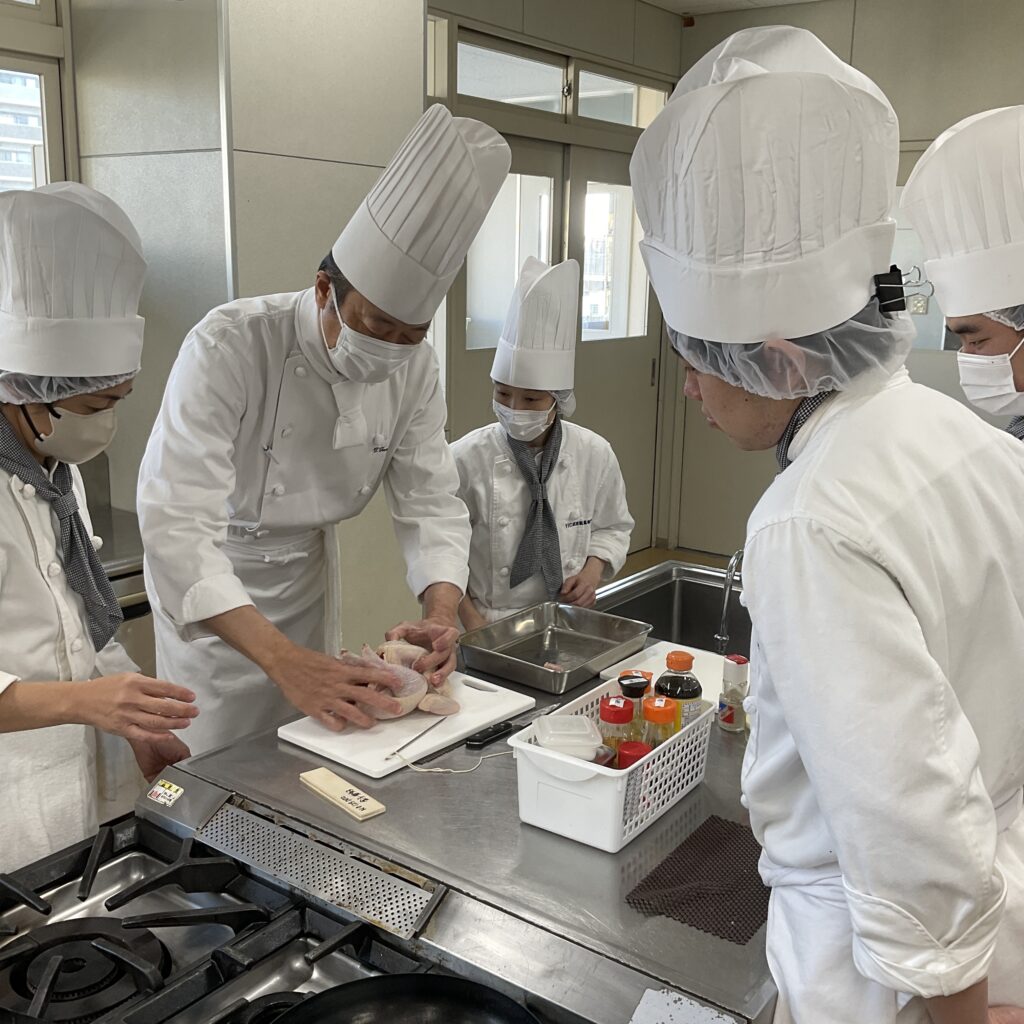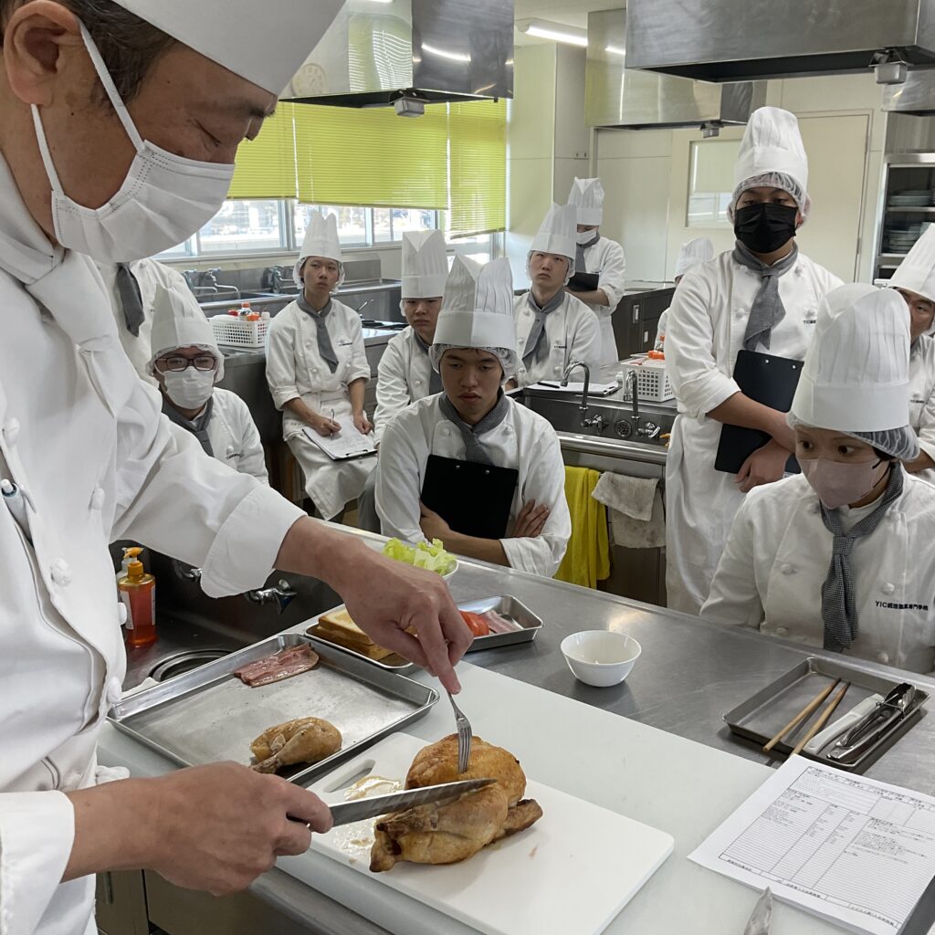 丸鶏を使用し、ふっくらジューシーに仕上がるよう紐で固定をしてオーブンでこんがり焼き上げ、そのお肉でクラブハウスサンドウィッチを作りました🥪学生達はとても楽しそうに実習をしていました😆🎶