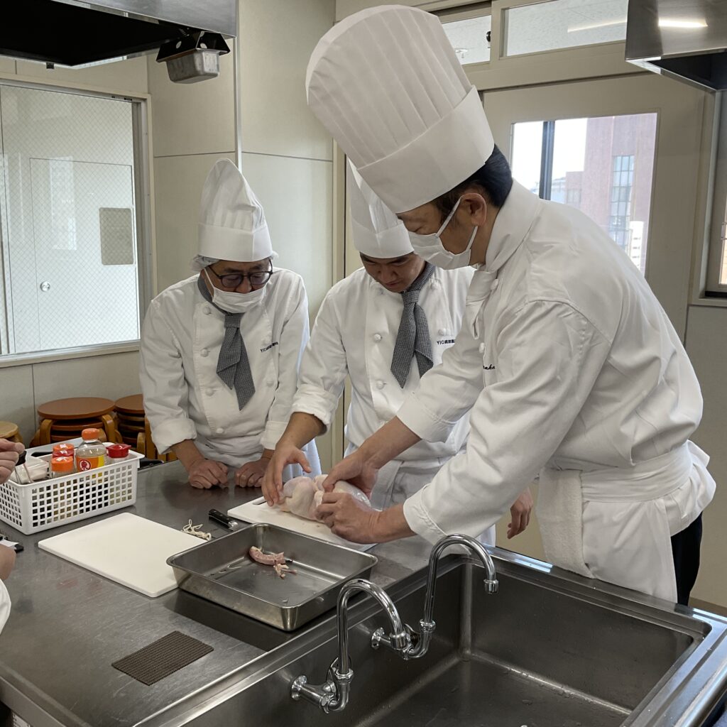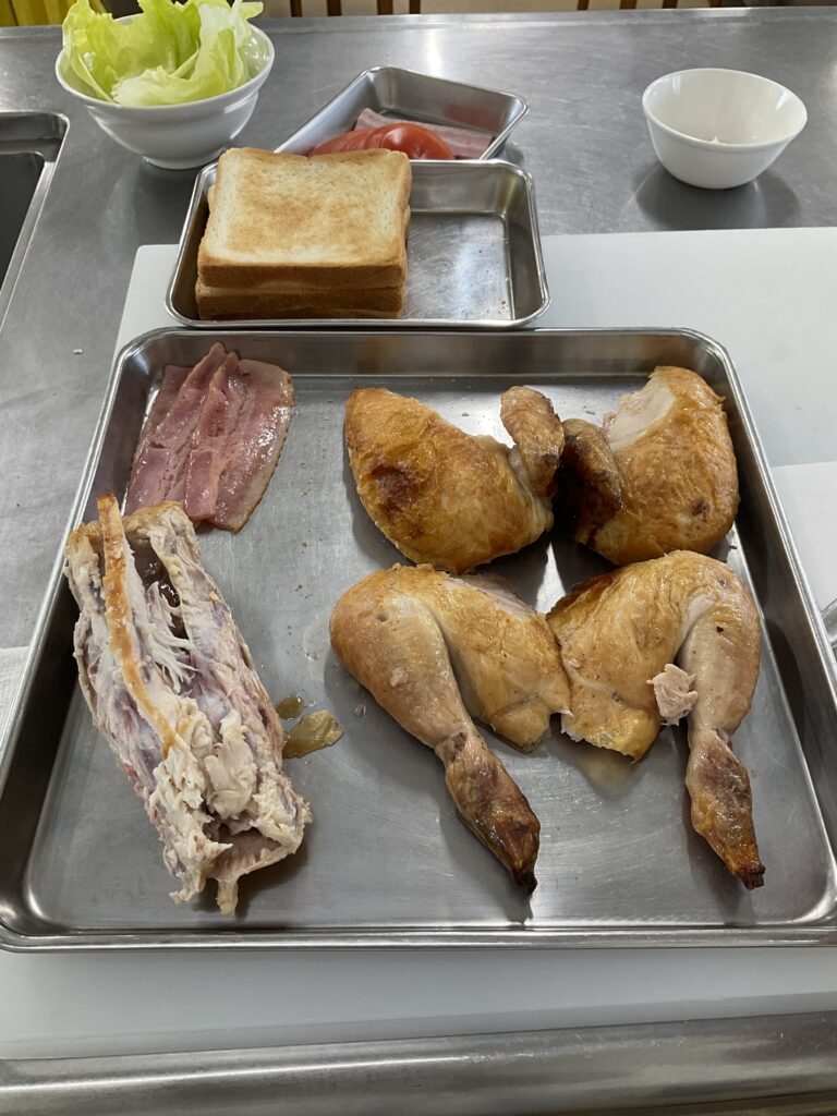 本日は、防長苑の料理長:田中料理長に起こしいただき、ローストチキン・クラブハウスサンドウィッチを教えて頂きました✨🐷
