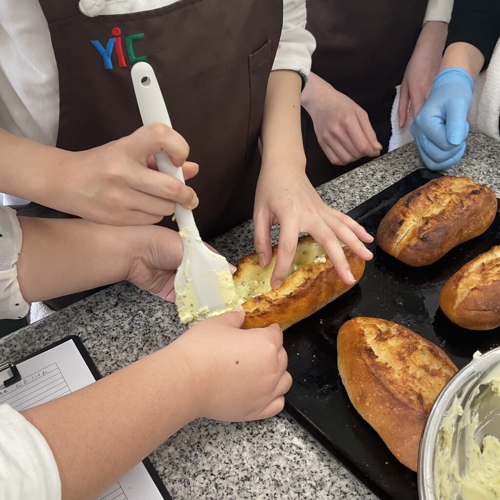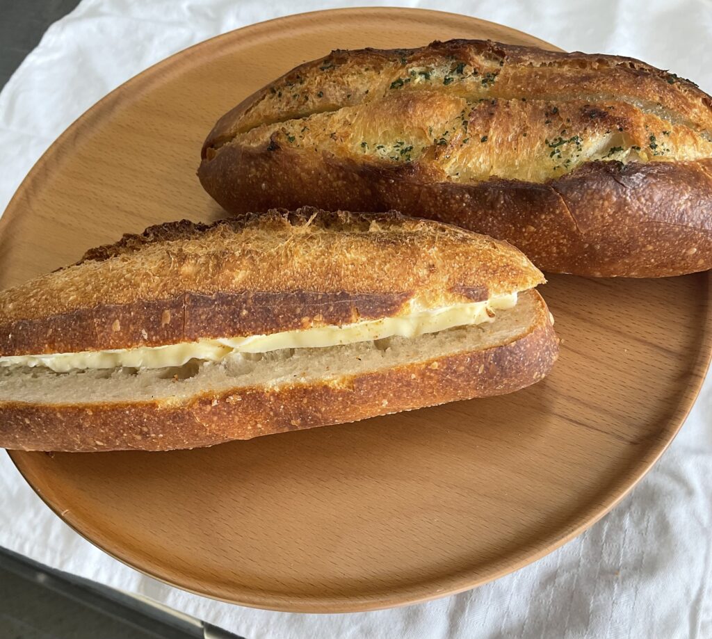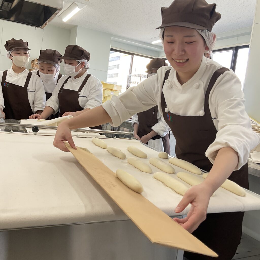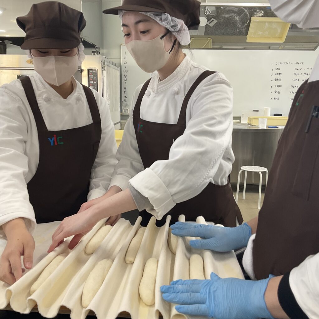本日は山口県にある『ケァンベル』の安野先生にガーリックフランス🥖とミルクフランス🥖を教えていただきました。フランス粉、塩、水、酵母のみを使い、シンプルな食材で外はパリパリで香ばしく、中はもちもちです!材料がシンプルだからこそ職人技が重要ですね!実習も手早く出来るようになり、美味しい仕上がりました★