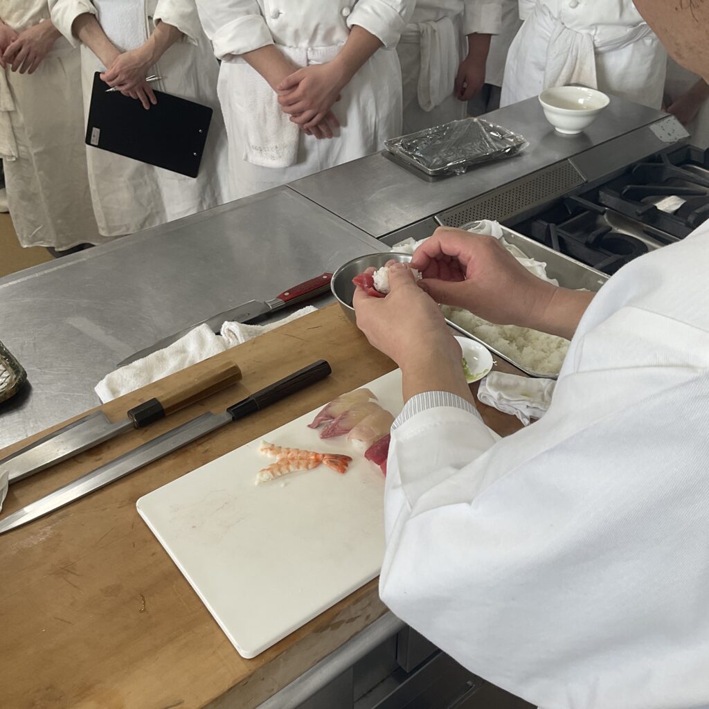本日は、四季菜もりの料理長と本校の卒業生2人にお越しいただき握り寿司の授業をしました🫶🏻︎💕︎︎