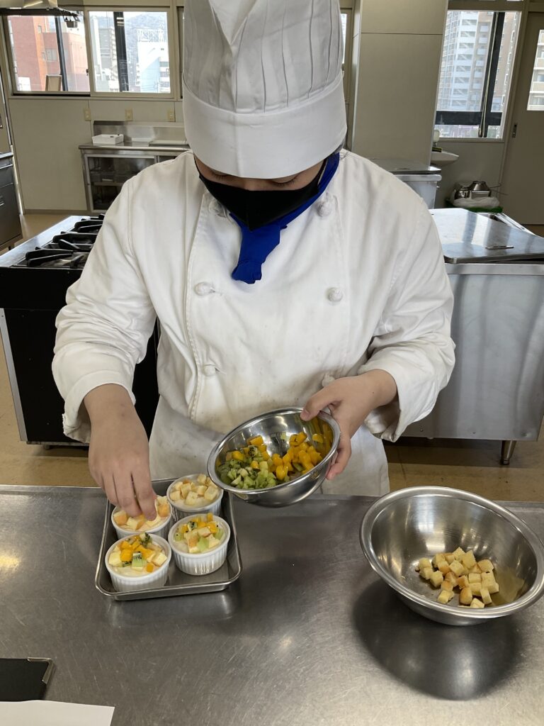 2月6日(金) フード実習今回のフード実習では3~6歳の子供向けのご飯・おやつを考えて実際に作ってみした!サンドイッチはポケット型にして食べやすくしたり、手やスプーンで食べれるものにしたり工夫がたくさん見られました✨️見た目も可愛く美味しそうに作ることが出来ました(๑´ω`ノノ゙✧
