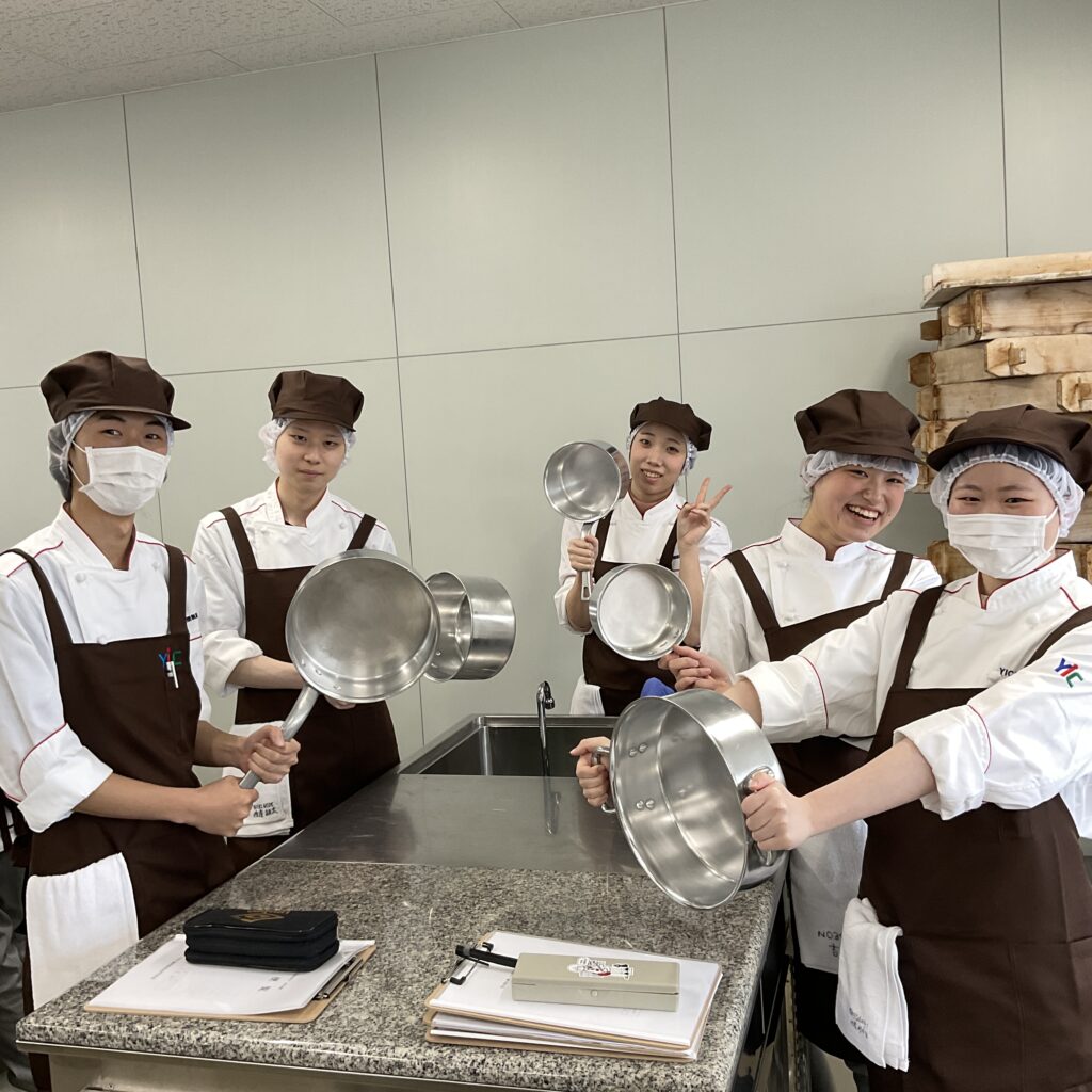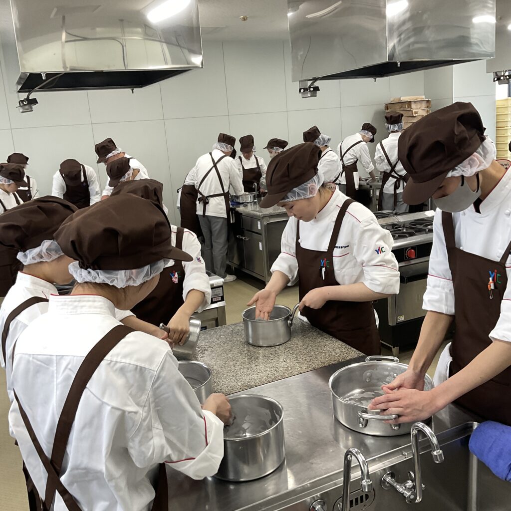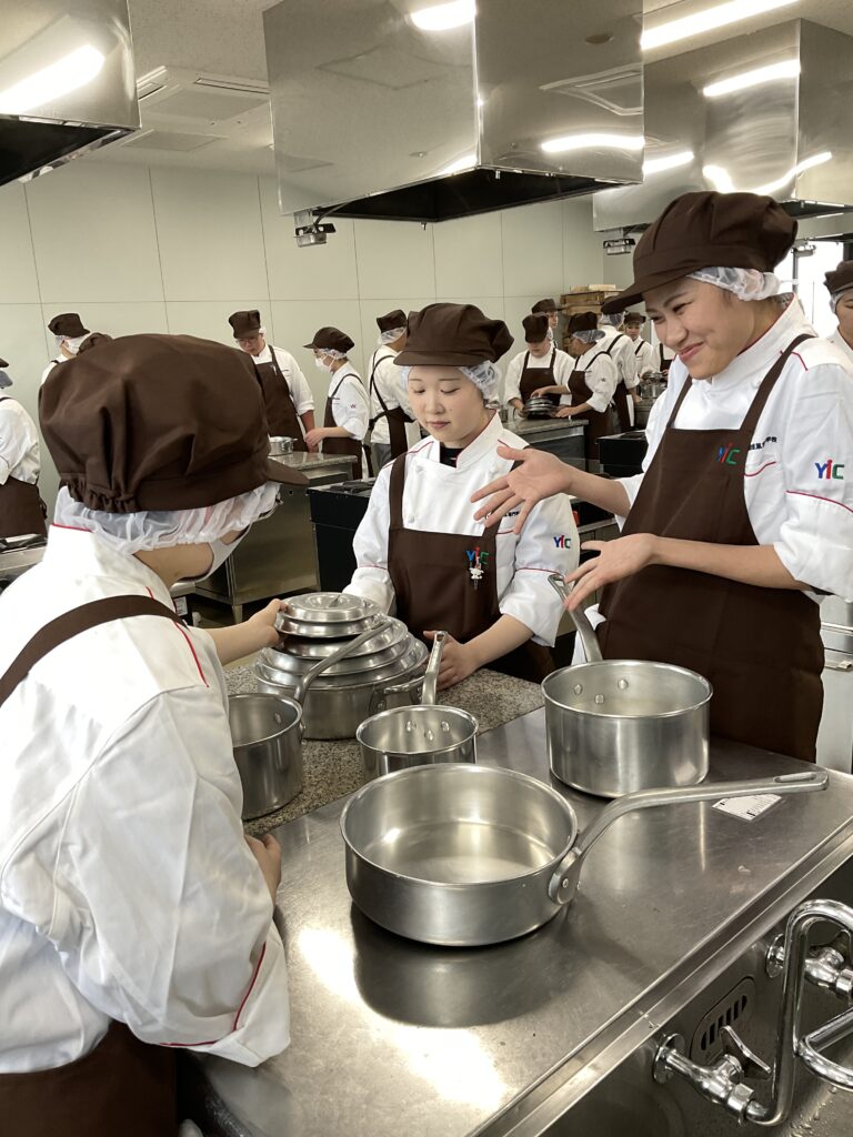 製菓クラスは、学校の名物といっても過言ではない‼️鍋磨きのレクチャーをし、実際の磨き方や、実習室の使い方について学びました!