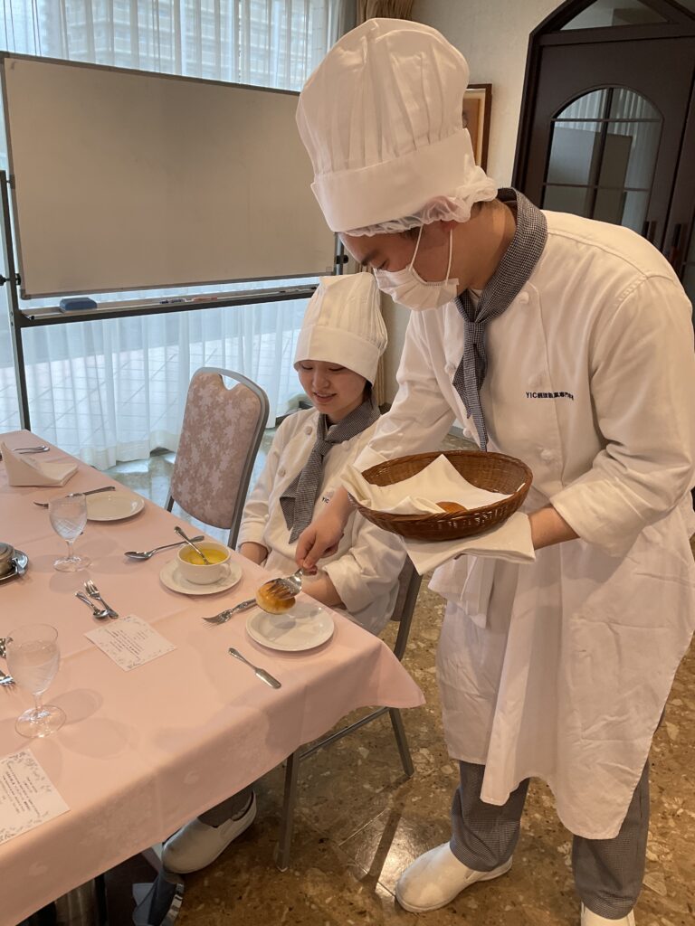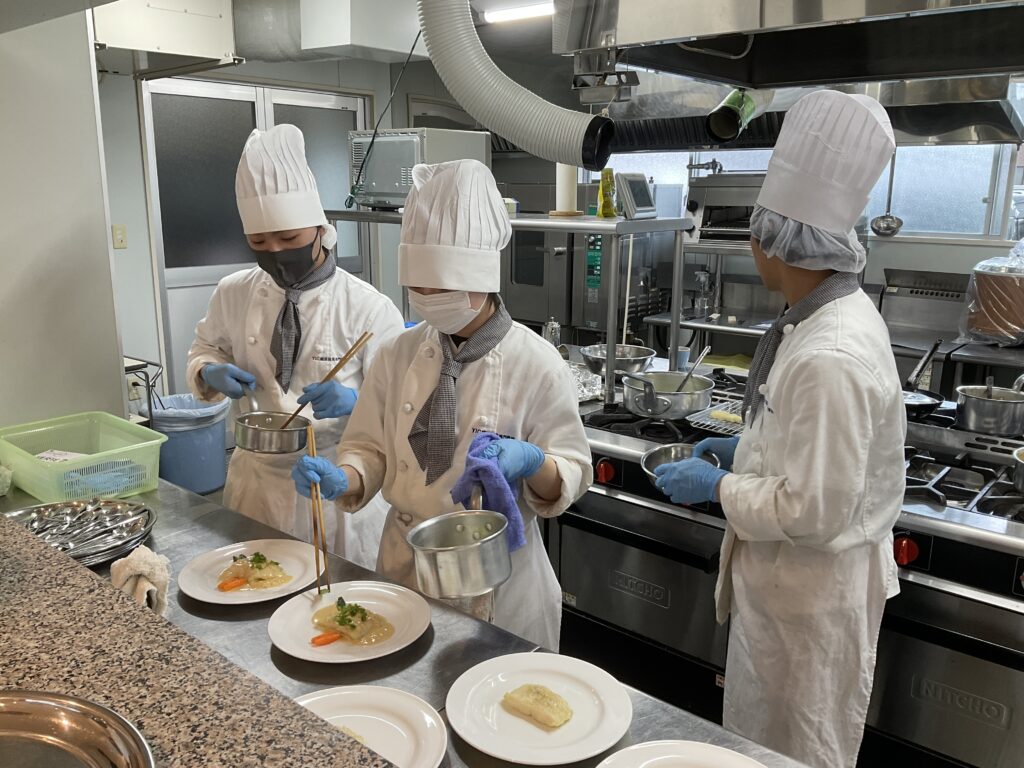昨日から仕込みをして今日はクラス内で提供練習を行いました٩( ‘ω’ )و料理の仕上げもサービスも初めてでしたが協力して行うことができました✨レストランのオープンに向けて練習頑張っていきましょう!!