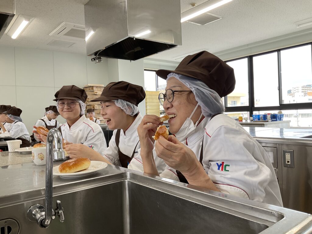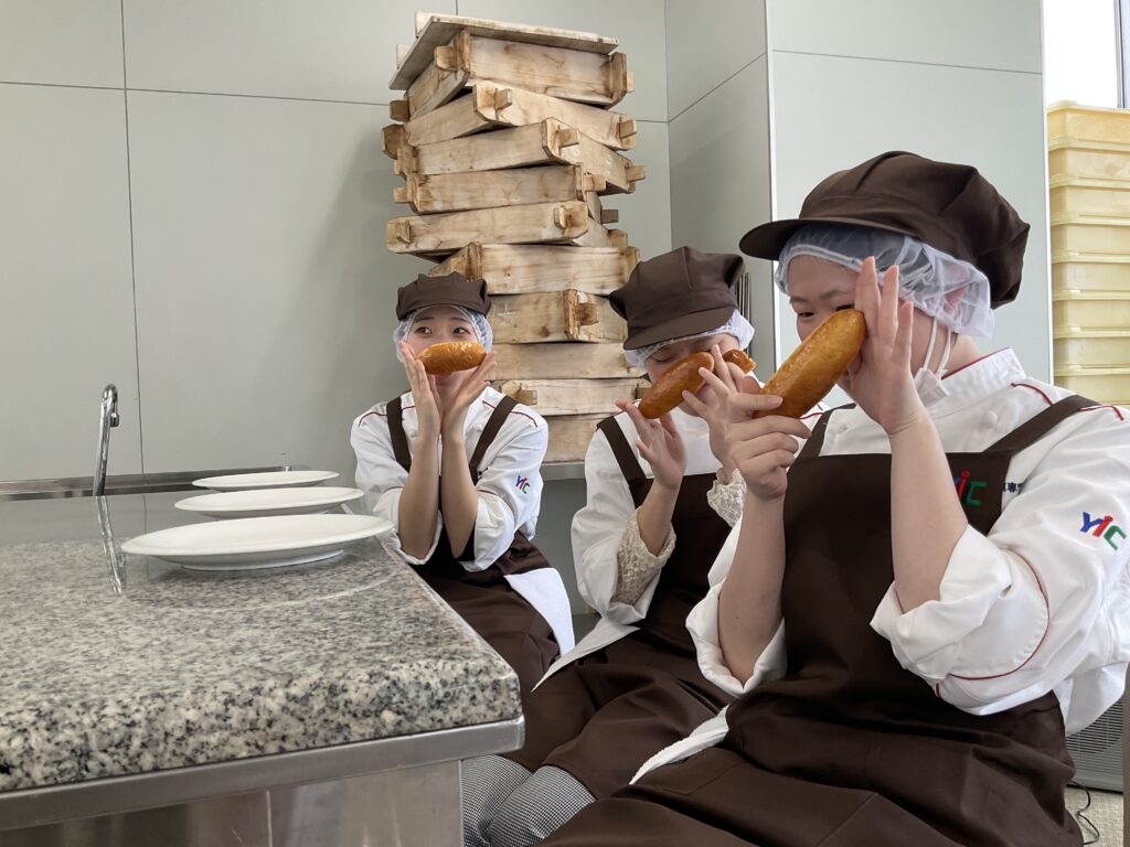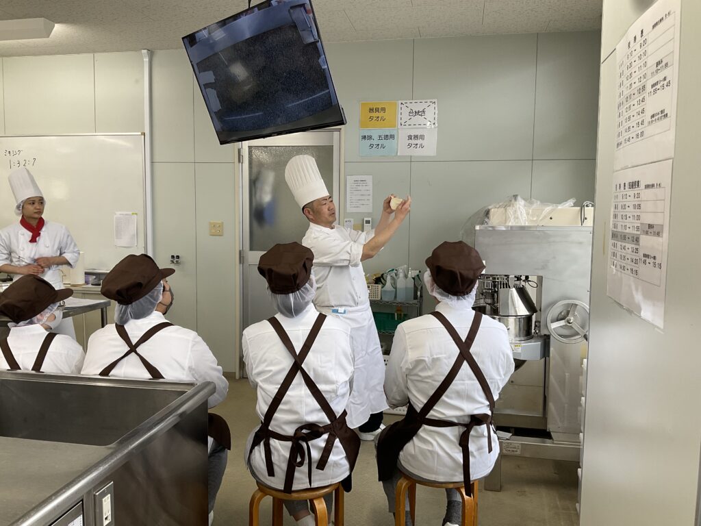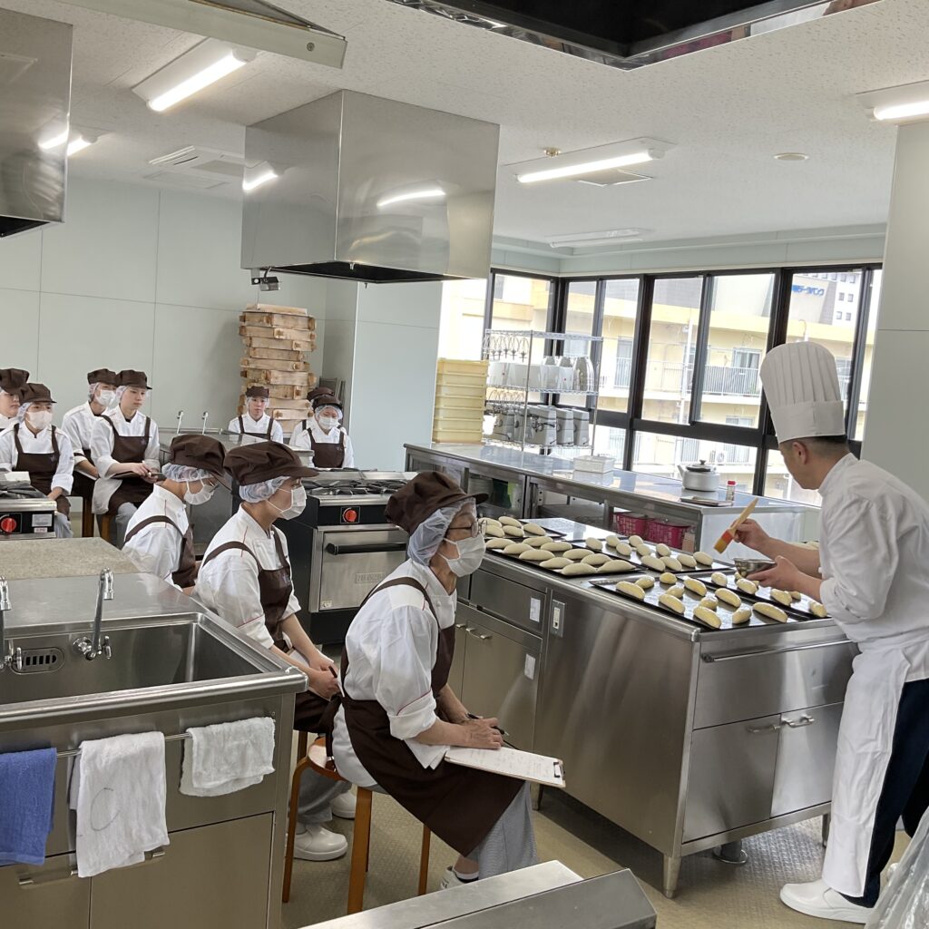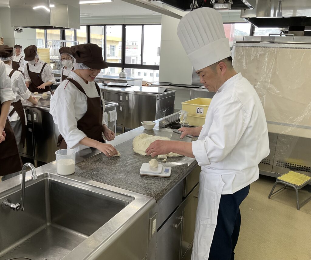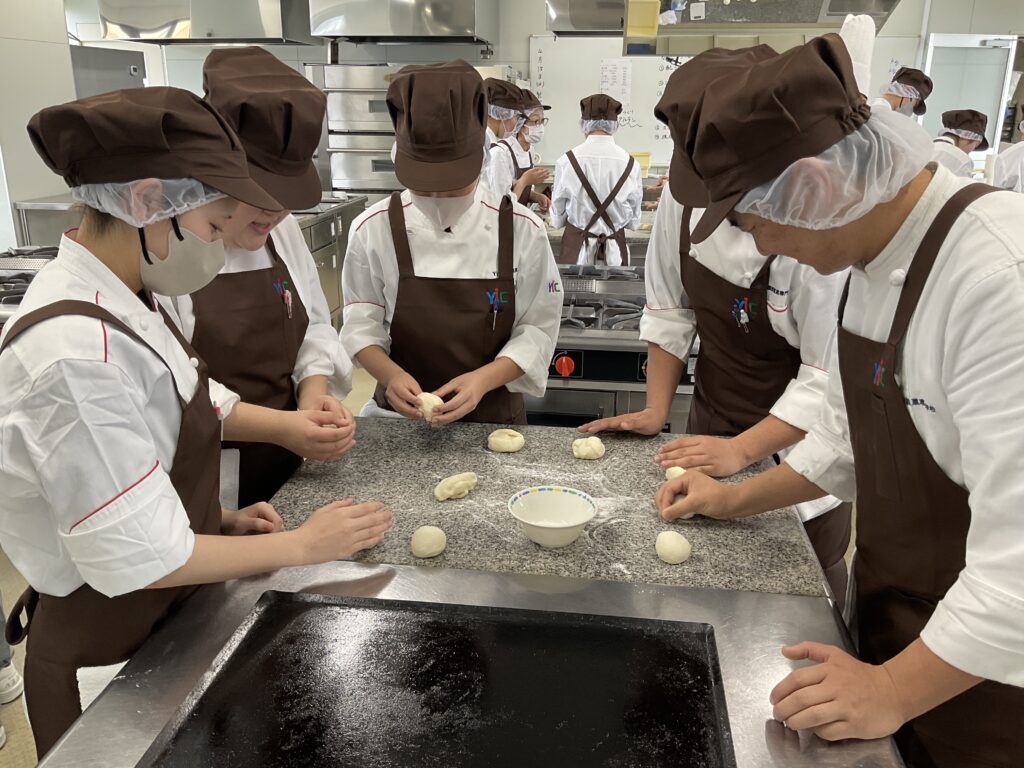 パン生地の手触り、丸め方や成型。戸惑いながらも学生達も頑張っています💪