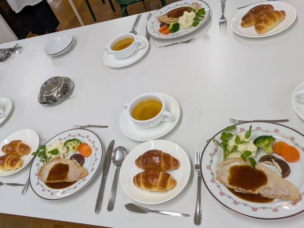 12月11日(木)山口県立防府西高等学校さんとのテーブルマナーの連携授業をおこないました✨️皆さんとてもスマートに作業を行っておりました🍴😋テーブルマナーは食事を楽しくスマートにエレガントに振る舞うためのルールです。時間を共有して和やかに食事ができるように身につけておくと素敵ですね💕︎