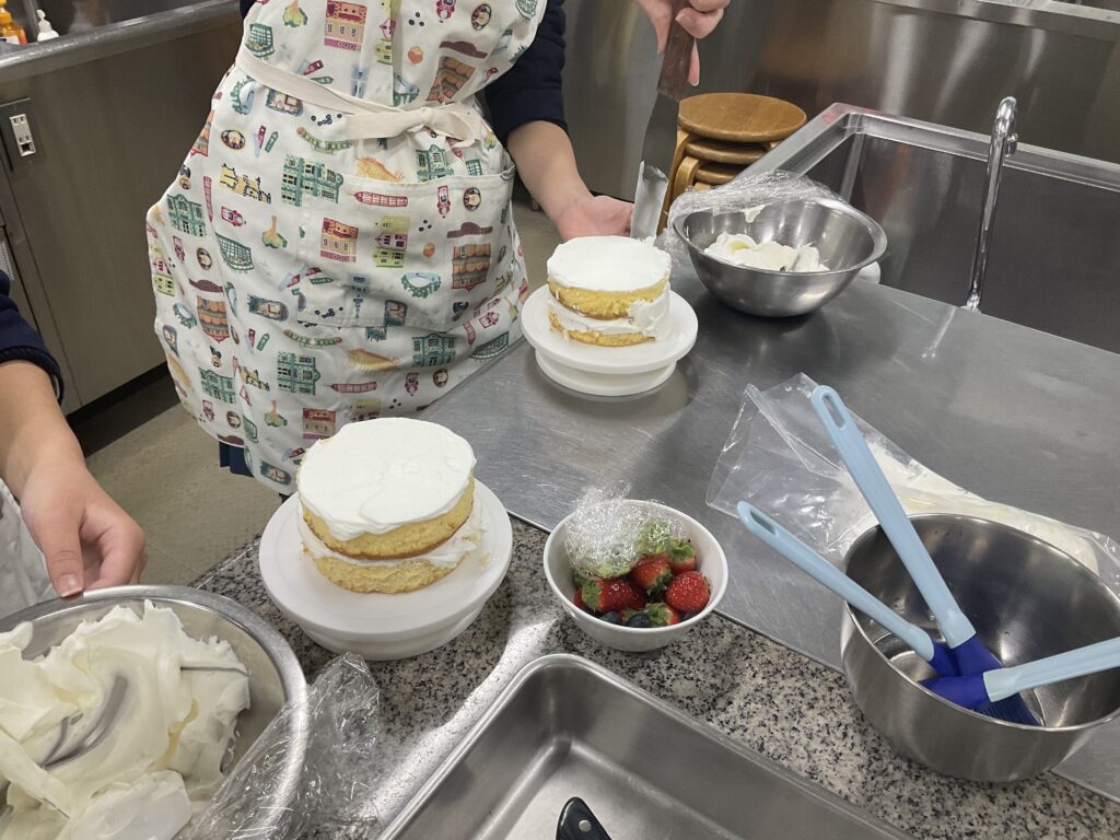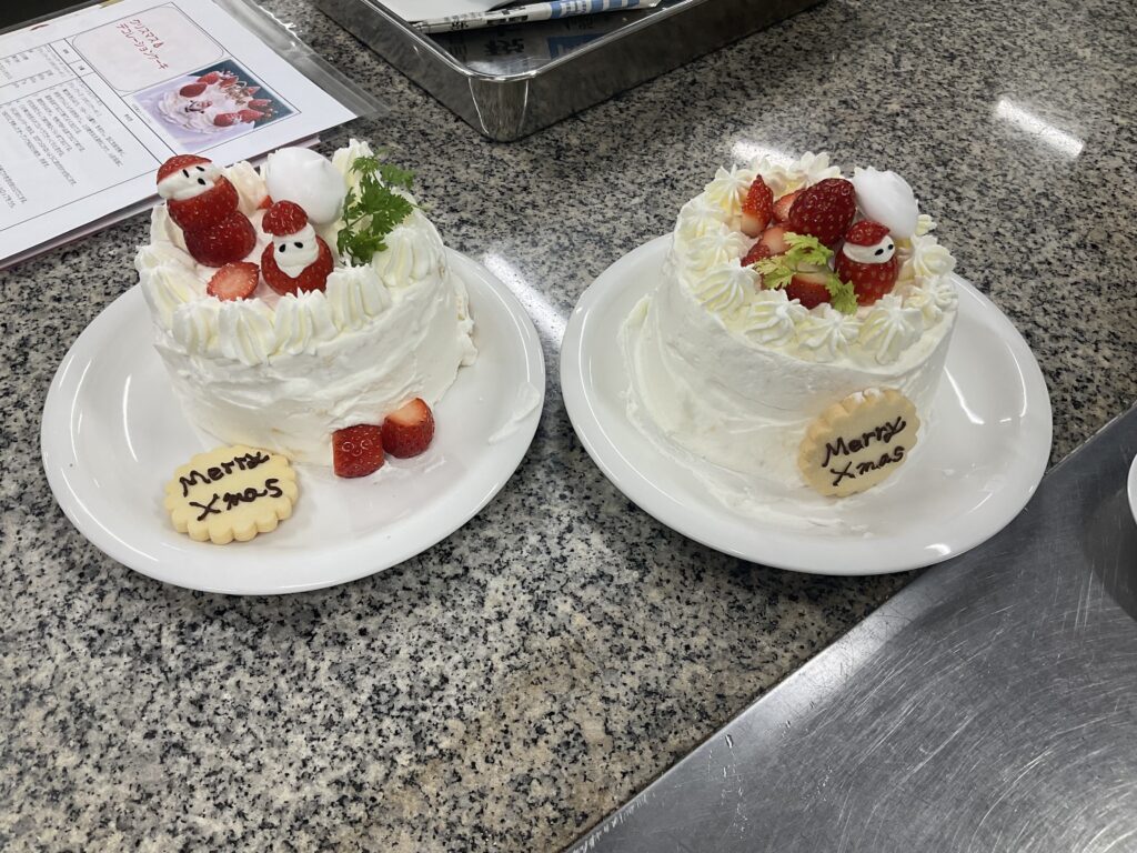 12月24日(水) 夜のオープンキャンパス🌙゚ クリスマス🎄デコレーションケーキ 今日はクリームのナッペとデコレーションを体験していただきました。 ナッペには苦戦しながらも、みんなオリジナルのクリスマスケーキを作ることができました✧︎。